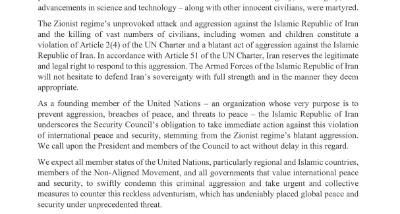 Condemnation of the Zionist Regimes Military Aggression against Iran