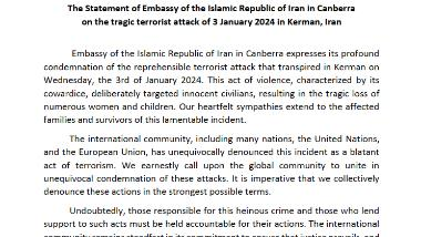 The Statement of Embassy of the Islamic Republic of Iran in Canberra