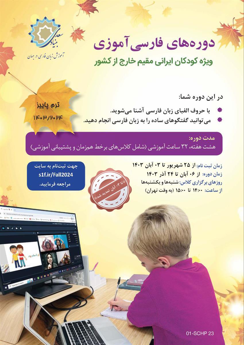 بنیاد سعدی ترم جدید آموزش زبان فارسی آنلاین برای کودکان ایرانی مقیم خارج از کشور را در فصل پاییز برگزار میکند. این دورهها برای آشنایی دانشآموزان با الفبای فارسی و توانمندسازی آنها در انجام گفتگوهای ساده به زبان فارسی طراحی شدهاند.